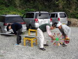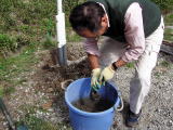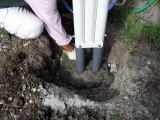 | 1メートルくらい掘りました | セメントを作ります | 砂利とセメントで固めます | ||