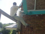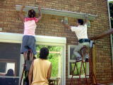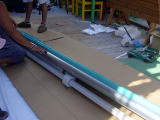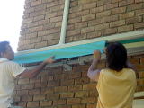 午後から武道大学の学生二人にバイトで作業を手伝ってもらいました 二人ともレスリング部です 幅が広いため、雨ケースも二つの長さを接続しました |