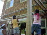 アーム(開く部品)をはめ込みます これが重い! 学生たちも慣れない作業に悪戦(>_<) 彼らの大家さんも心配で駆けつけてくれました |